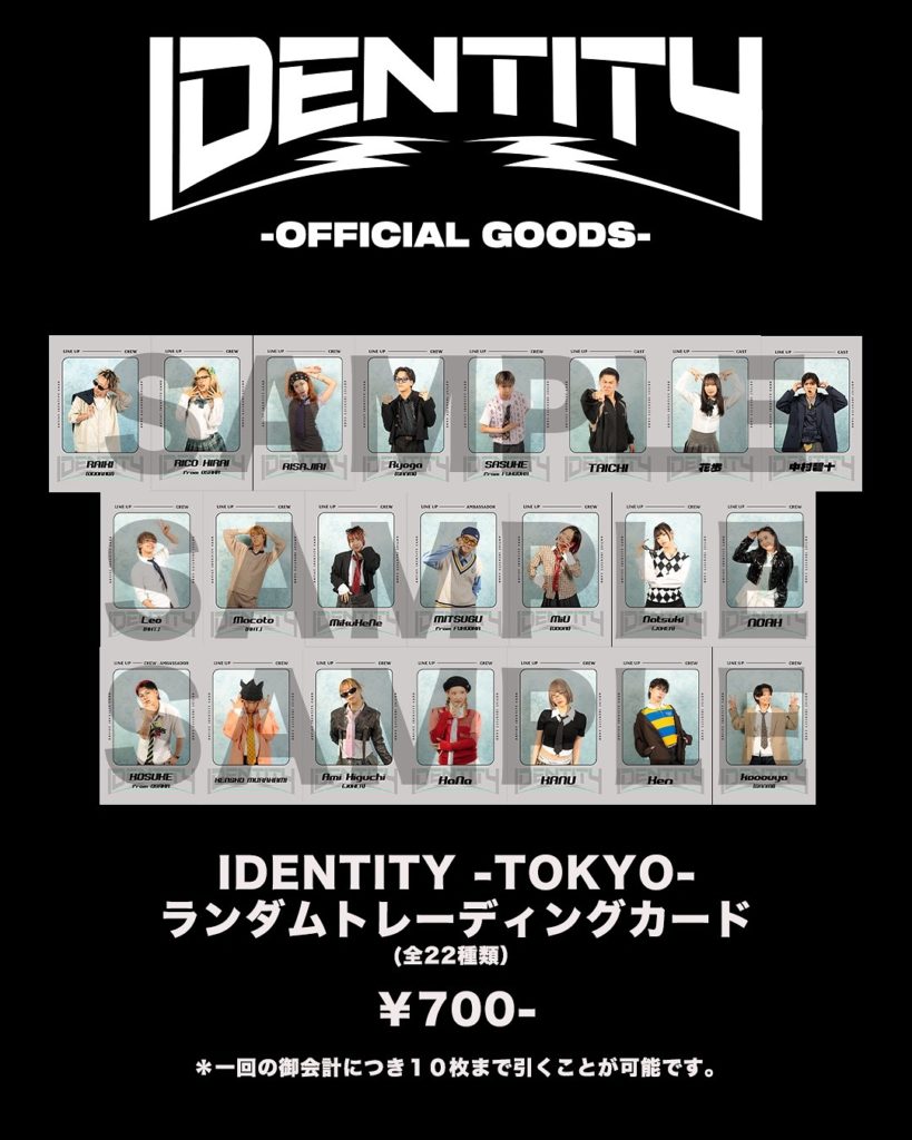 本公演ではオリジナルグッズの販売も行われる。注目は出演ダンサーを収録した「IDENTITY -TOKYO- ランダムトレーディングカード(全22種)」。