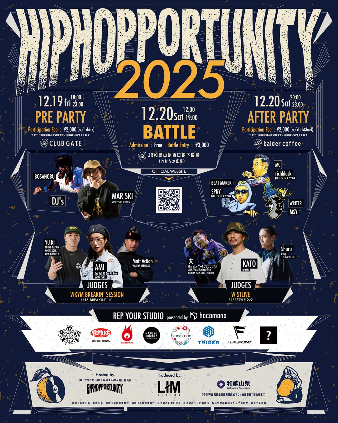 2025年12月20日(土)、JR和歌山駅西口地下広場(わかちか広場)にてヒップホップカルチャーフェス「HIPHOPPORTUNITY 2025」が開催される。